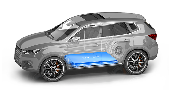 Speziell für Hybrid-Elektrofahrzeuge entwickelte Batterien mit hoher Energiedichte ermöglichen leichte und schlanke Batteriepacks. Das spart Platz.